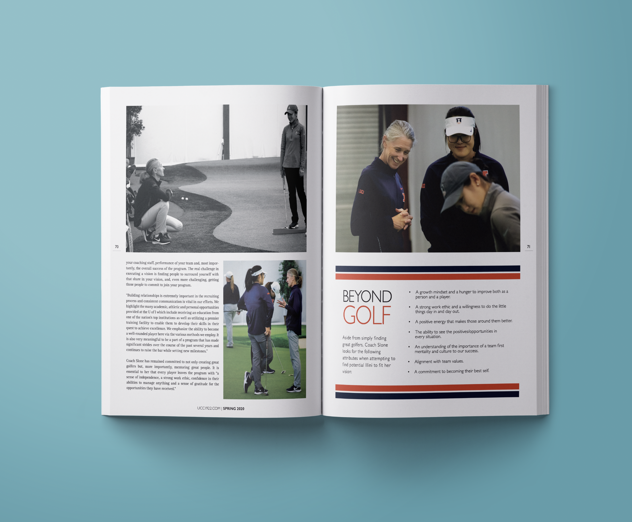 The FNG design team designs a twice-yearly magazine for the Urbana Country Club. We are integral to the entire process, from brainstorming to final production. We design, do photography, and as a copywriter, I also write select stories and edit all of the copy involved in the magazine. Below are spreads designed by me from the first five issues of the Scene. Full issues of the magazine can be seen at the link below.